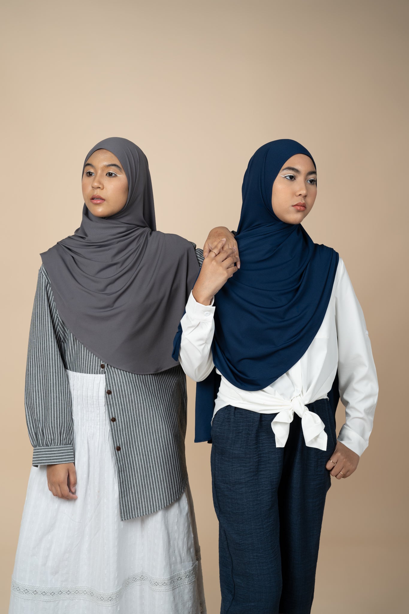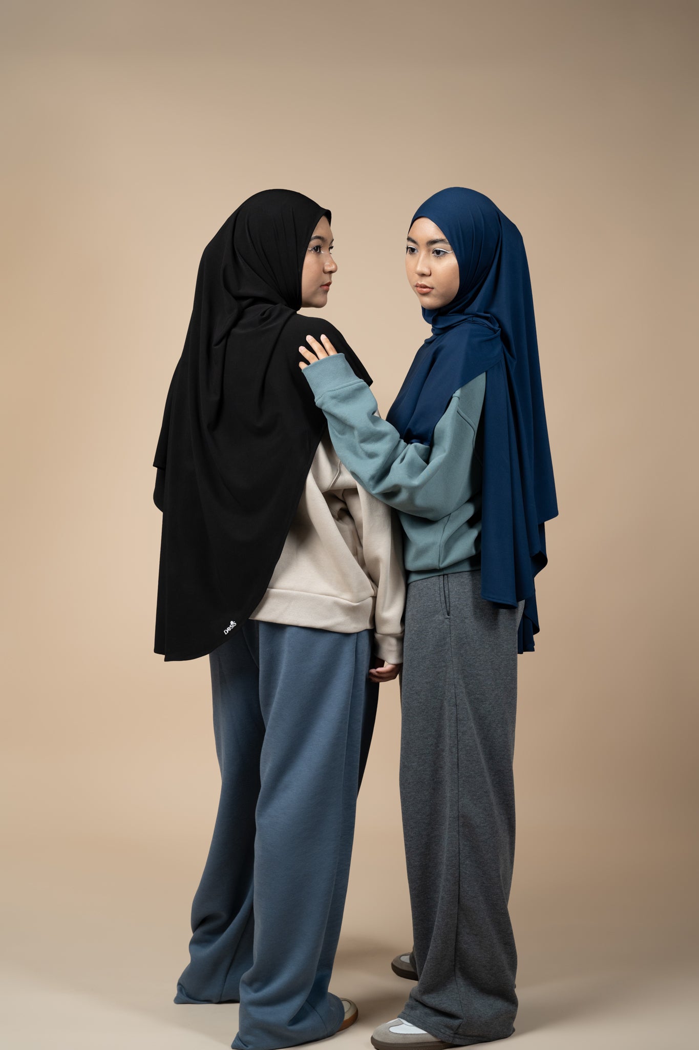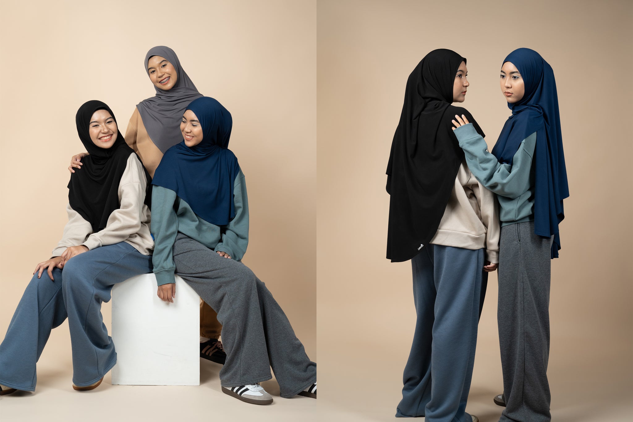 Our first collection embraces modesty and versatility at the same time. You can style the Back To Basics shawl in more ways than one!