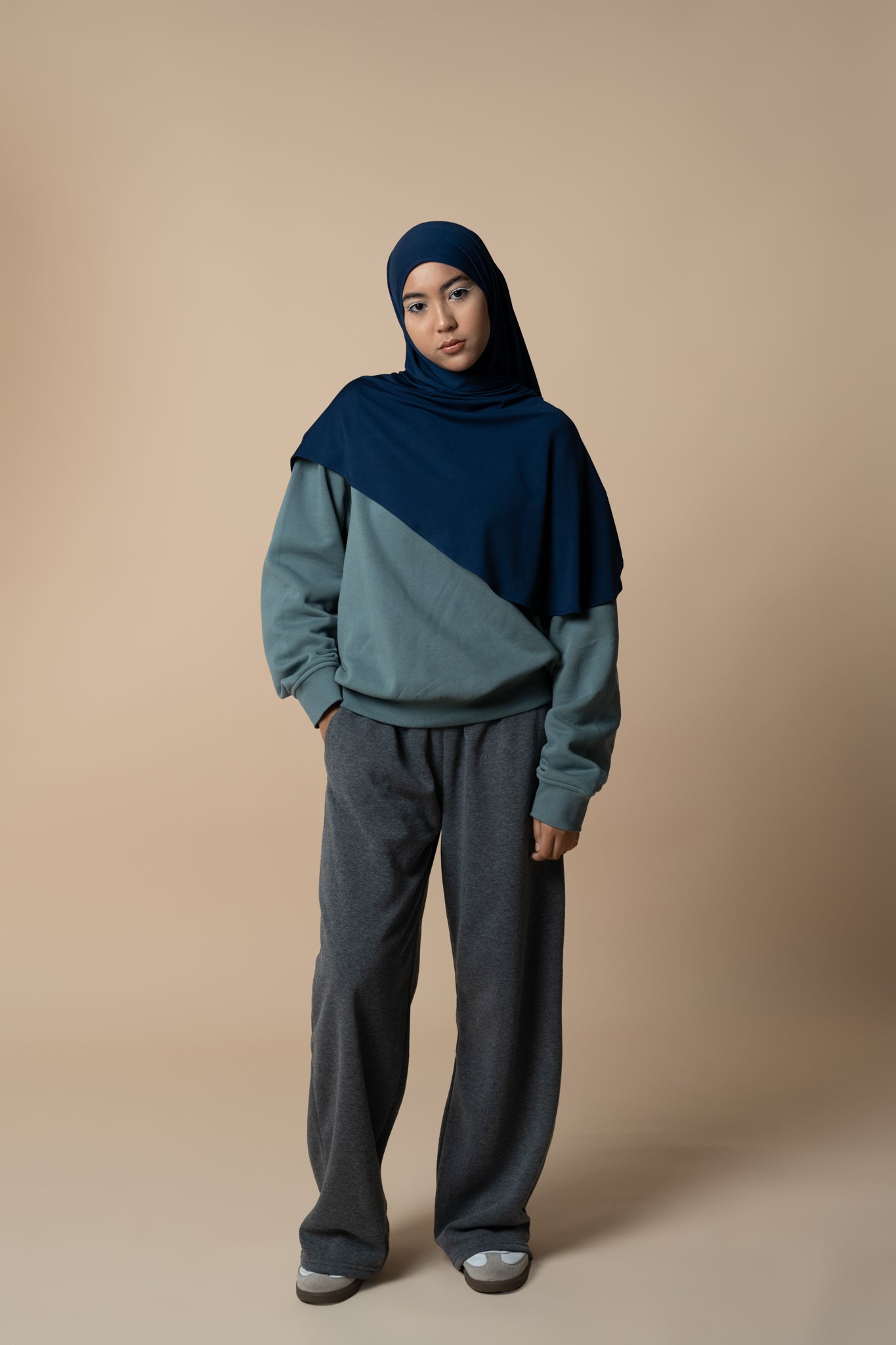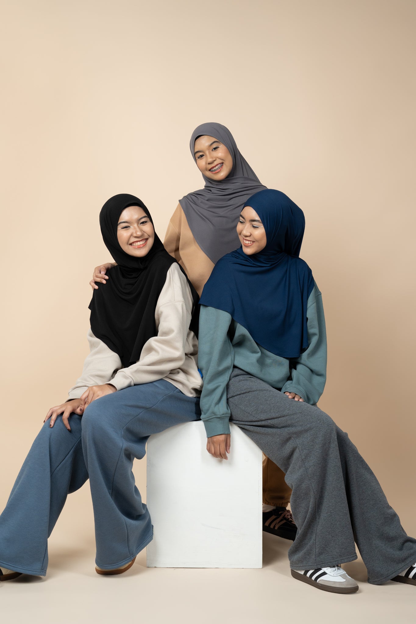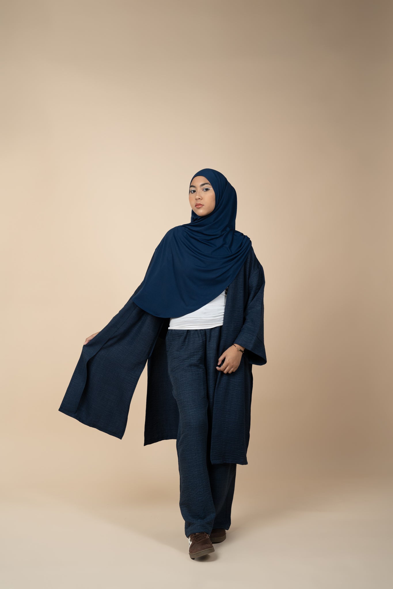 Our first collection embraces modesty and versatility at the same time. You can style the Back To Basics shawl in more ways than one!
